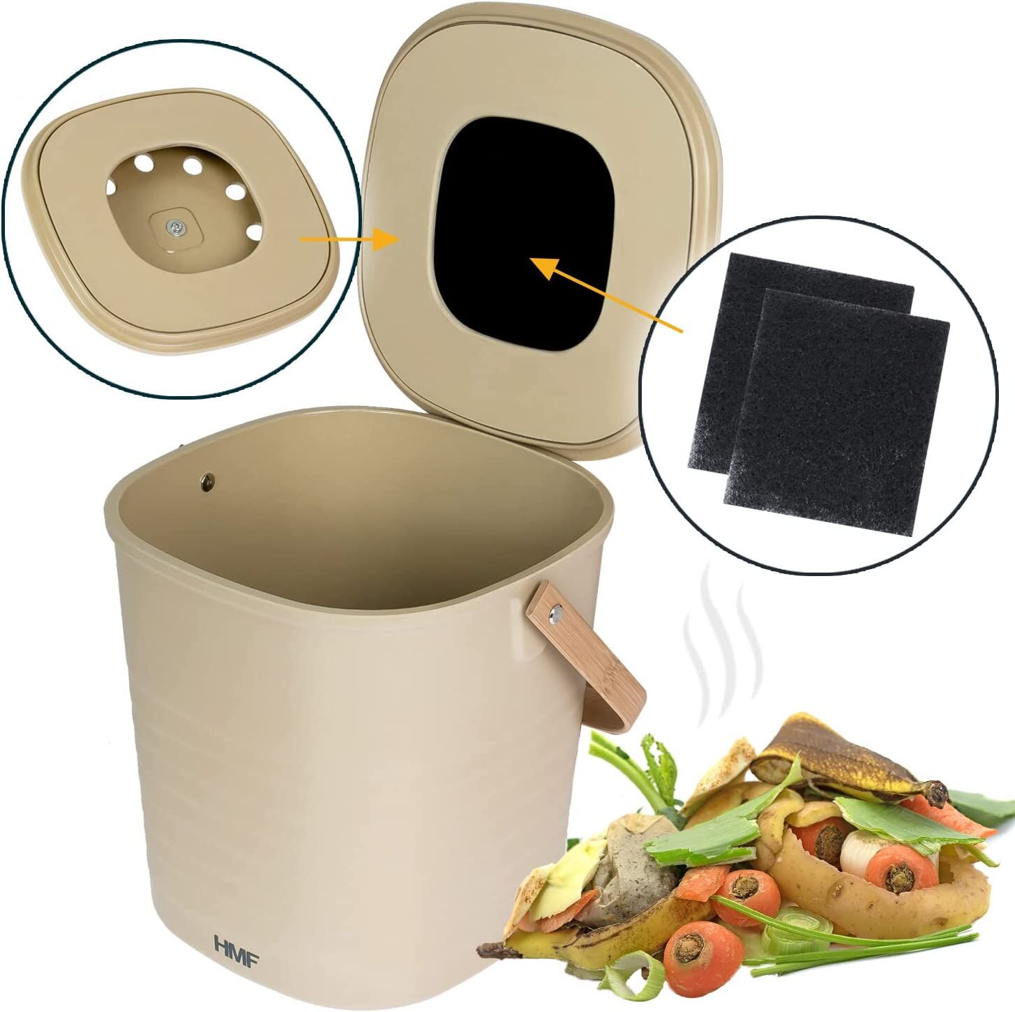 HMF Nachhaltiger Biomülleimer Komposteimer mit Deckel 6L beige