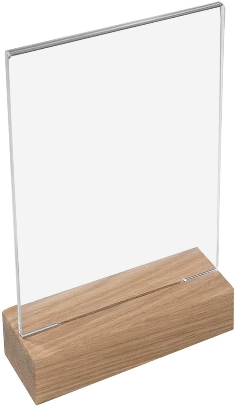 Präsentieren Sie Ihre Informationen stilvoll und gut erkennbar: Der hochwertige HMF Tischaufsteller aus Acrylkunststoff mit Holzfuß ist ideal zum Präsentieren von Menüs, Angeboten, Werbung etc.