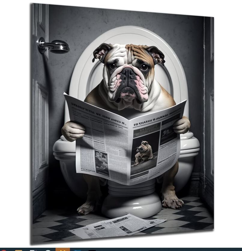 Wandbild Bulldogge auf Toilette 30x40cm HDF