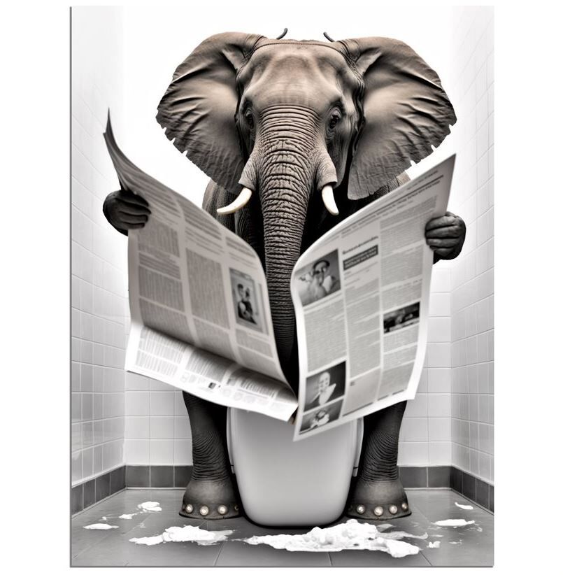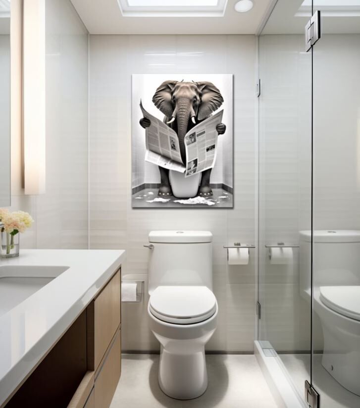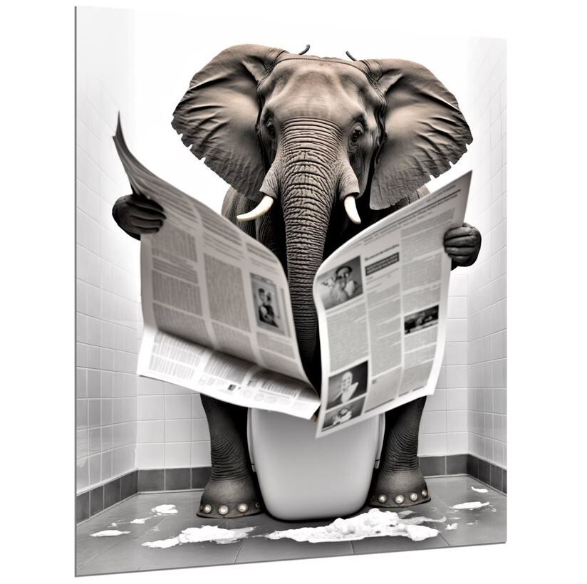Wandbild Elefant auf Toilette 30x40cm HDF