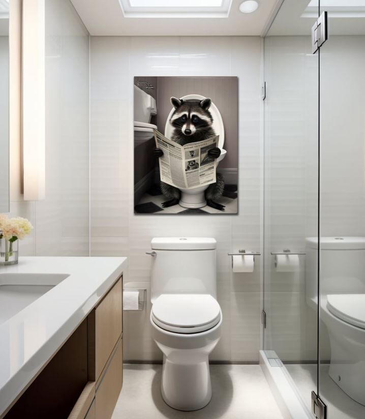 Wandbild Waschbär auf Toilette 30x40cm HDF