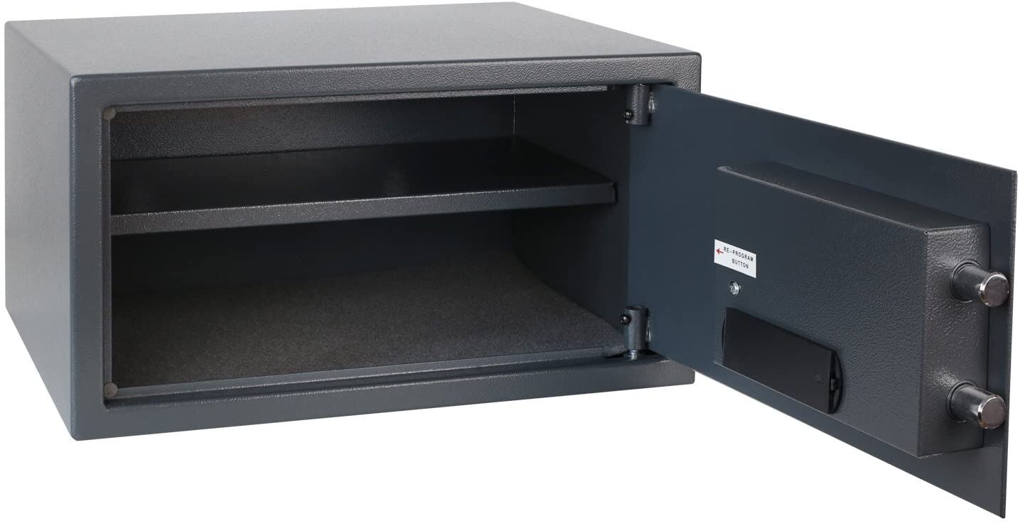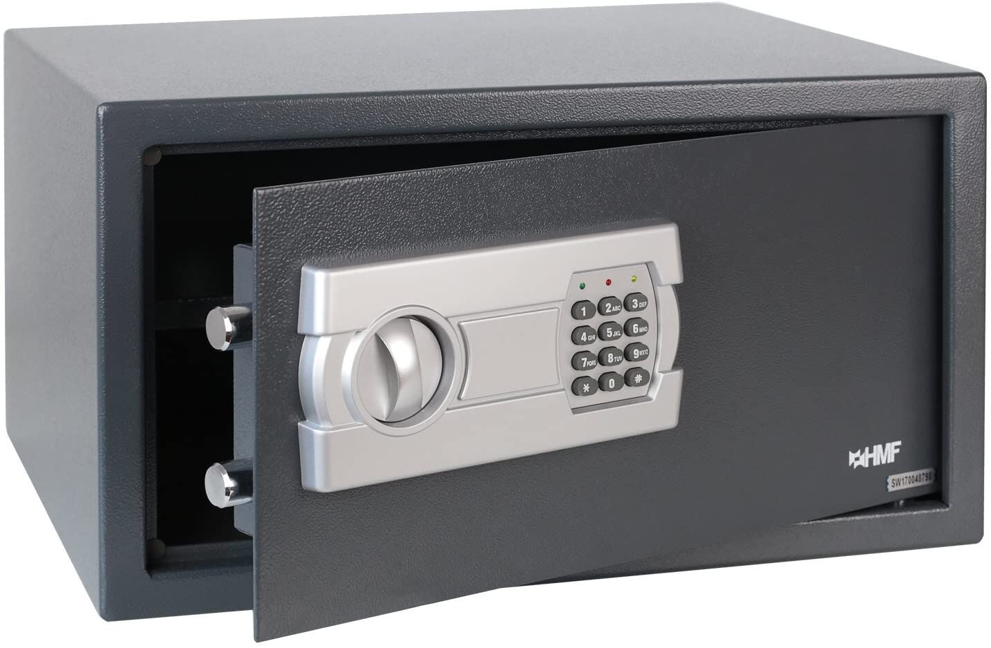Der Möbeltresor mit Elektronikschloss von HMF überzeugt durch einen soliden Stahlkorpus und eine Doppelbolzenverriegelung.